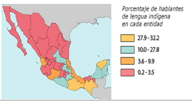 Los estados con mayor porcentaje de hablantes de lengua indígena son Oaxaca, Chiapas y Yucatán. Lengua castellana